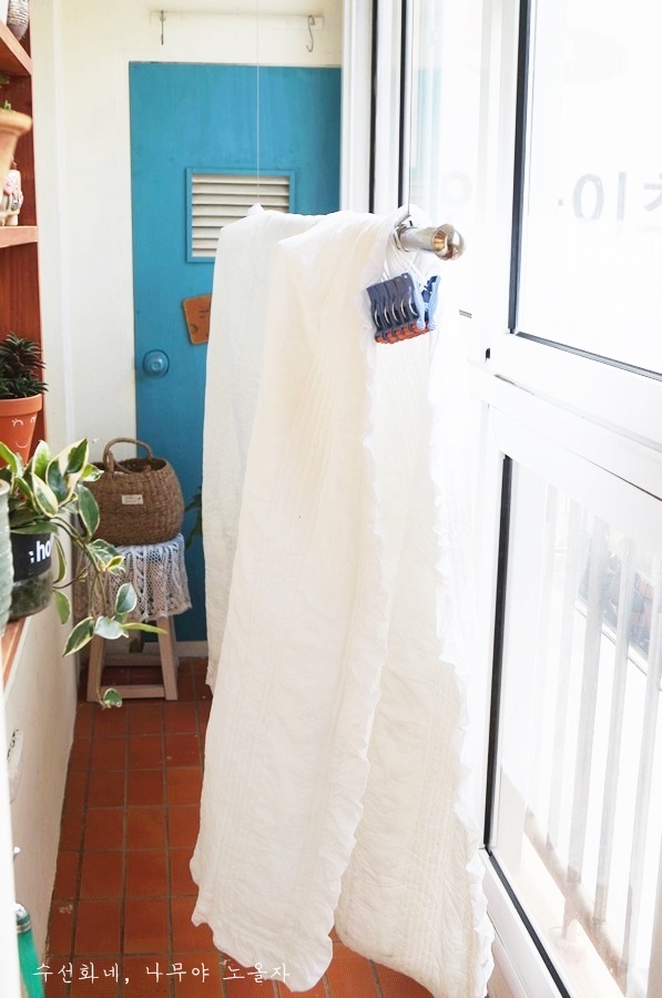 예전에는 베란다 창문을 열고 이불을 널었었는데,